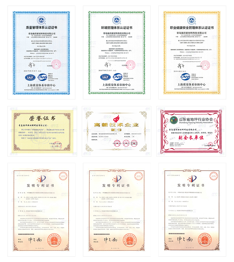 (證書(shū)編號(hào):00320Q30269R1S/QD)、ISO14001:2015環(huán)境管理體系認(rèn)證(證書(shū)編號(hào):00320E20134R1S)、ISO45001:2018職業(yè)健康安全管理體系認(rèn)證(證書(shū)編號(hào):00322S30152R1S)、獲得山東省專精特新中小企業(yè)、瑯琊榜工業(yè)品牌上榜企業(yè)等稱號(hào)。公司自主研發(fā)的飲用水管道聚脲防腐涂料通過(guò)了英國(guó)飲用水安全WRAS實(shí)驗(yàn)室認(rèn)證、法國(guó)ACS衛(wèi)生認(rèn)證機(jī)構(gòu)檢測(cè)報(bào)告及其他權(quán)威檢測(cè)機(jī)構(gòu)SGS、天祥集團(tuán)等檢測(cè)認(rèn)證,產(chǎn)品暢銷國(guó)內(nèi)外,遠(yuǎn)銷歐美亞。公司積累了大量的聚氨酯產(chǎn)品的研發(fā)應(yīng)用經(jīng)驗(yàn)。其中無(wú)溶劑聚氨酯地坪系列產(chǎn)品,將聚氨酯材料優(yōu)異的彈性、耐磨、防腐、耐候等性能引入地坪系統(tǒng),解決傳統(tǒng)地坪材料的諸多別斷,為地坪行業(yè)提供更完善的聚氨酯地坪配套解決方案。