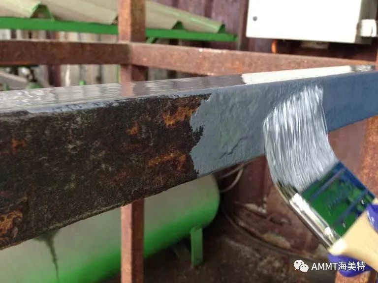 在工業(yè)界,傳統(tǒng)防銹、除銹的工序在過去 50 年都是一些非常沒有效率的方式,這些工序、步驟僅僅只能達到有限的效果;其主要的做法就是讓涂料“粘”在表面上,而無法讓已經(jīng)銹蝕的表面其銹蝕情況得到控制,因為銹蝕的表面有無數(shù)的銹蝕孔,深入到表面以下;孔中仍有水汽或甚至于有霉菌,會讓銹蝕持續(xù)進行。