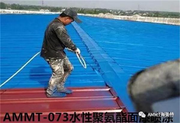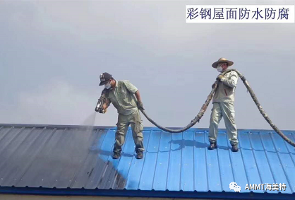 高性能聚脲防水材料在彩鋼瓦防水中應用,涂層致密、無接縫、抗?jié)B透,即使受到外界的熱脹冷縮,涂膜也不會開裂,而且還能將彩鋼瓦整體“裹住”,起到防水作用,能有效阻止屋面老化生銹。即使彩鋼瓦銹透,噴涂聚脲后,仍能起到很好整體防水作用,從而使彩鋼瓦的使用壽命延長10年以上。綜合計算二次維修費用低,避免更換屋面板停工停產(chǎn)造成的損失,同時減少屋面板更換導致的建筑垃圾處理,是目前市場上性能極其優(yōu)良、品質(zhì)極其穩(wěn)定的屋面防水材料。