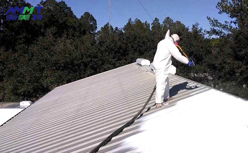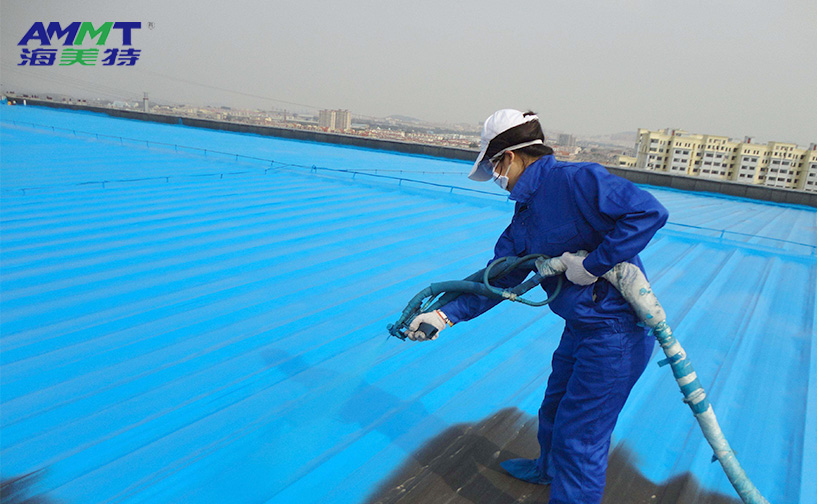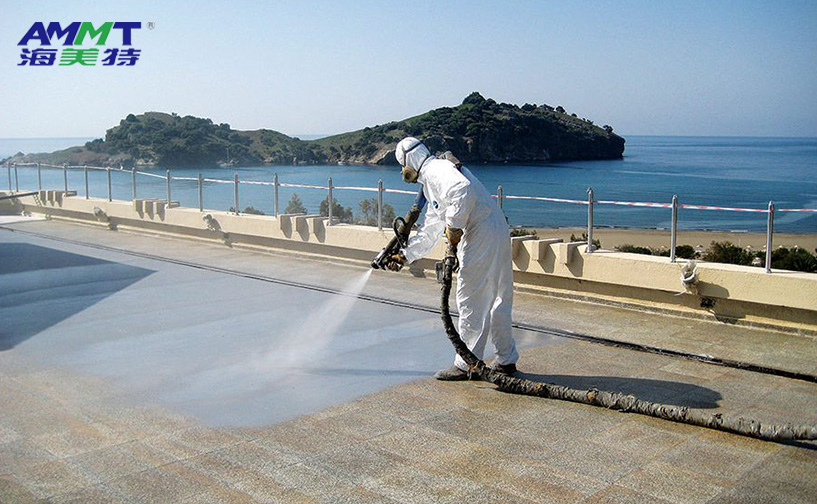 海美特自主研發(fā)的第三代噴涂聚脲彈性體材料,通過A組分改性半預(yù)聚體與B組分端氨基聚醚、胺擴鏈劑、納米填料、顏料組成,現(xiàn)場噴涂成型。